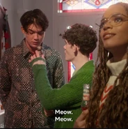 At home, Charlie tells Tao and Isaac how it happened again with him and Nick, and his two friends laugh about it. Tao asks Charlie if he has stopped to realize that maybe this is a sign that he and Nick are ready to take things further. Isaac clarifies that Tao is talking about sex. He admits to his friends that he feels self-conscious that he won’t know what to do, and is scared that Nick might not be ready to take that step with Charlie. Eventually, he kicks Tao and Isaac out of his room, so that he can get dressed in peace. He tries out a short-sleeved purple shirt, but changes his mind, and instead wears a long-sleeve shirt and cardigan to make him more comfortable.